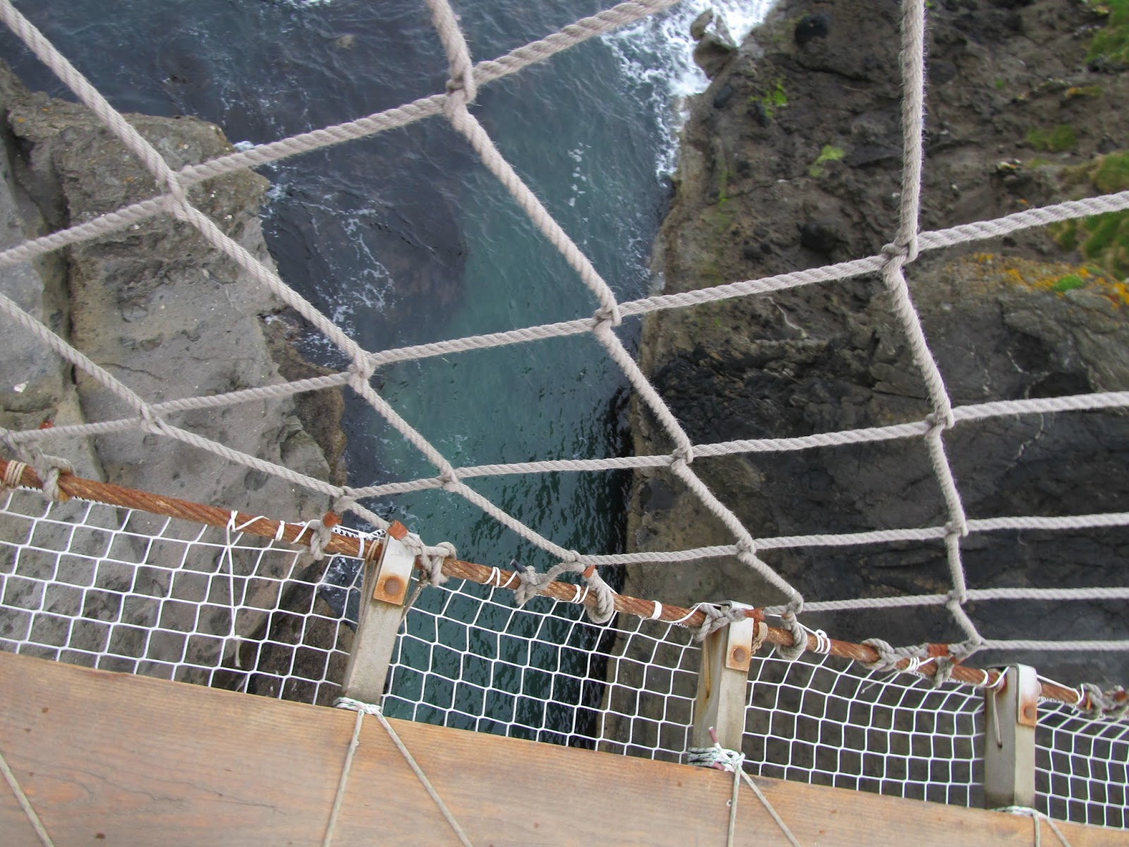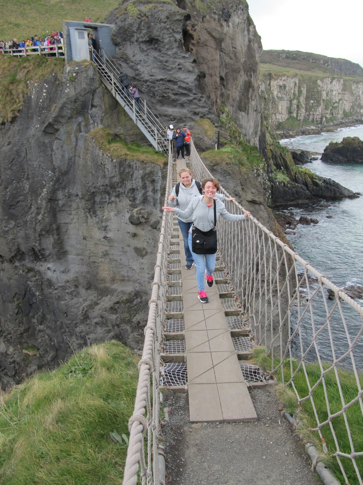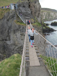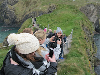 The next bus stop was at Carrick-A-Rede and Larrybane Visiting Center, where a rope bridge is strung between the cliff sides. Here all 13 members of the course, including Professor Wolfe were daring enough to cross this rickety bridge 30 meters above the sea. For over 300 years fishermen used bridges, such as this one to get to the best places for catching salmon during their migration.