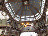 The class stopped to observe the culture of the people of the UK by visiting their local shopping markets and local eateries. Leadenhall Market is a covered market containing some high end stores as well as restaurants, butcher shops, and convenience stores.