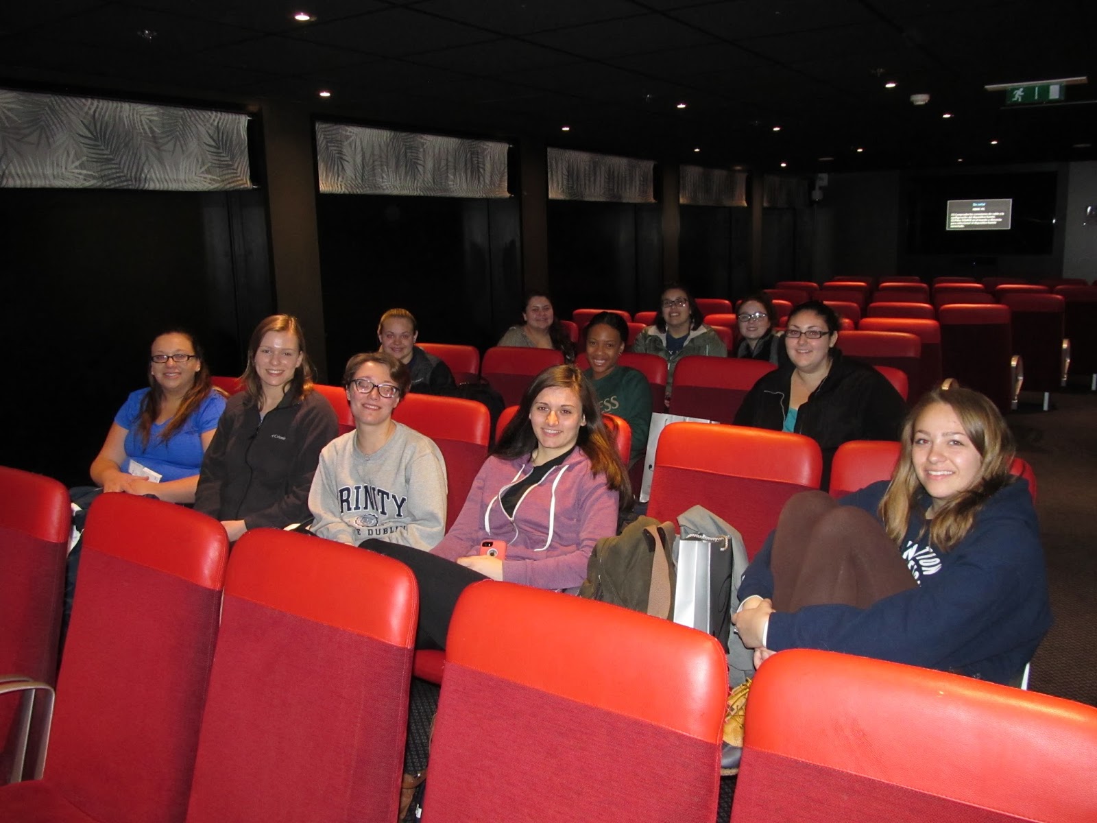 On the boat the girls enjoyed a movie as they crossed the Irish Sea.